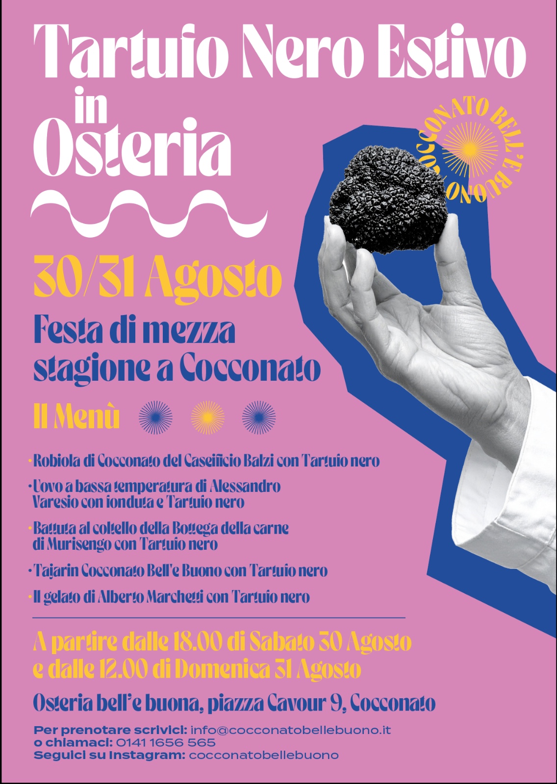 L'estate del tartufo nero si conclude nel fine settimana del 30 e 31 agosto con la festa di mezza stagione a Cocconato. Di cerca e commercio di tartufi se ne riparlerà da settembre con il via anche alla stagione autunnale del tartufo bianco in Langa e Monferrato e le fiere nazionali e internazionali.