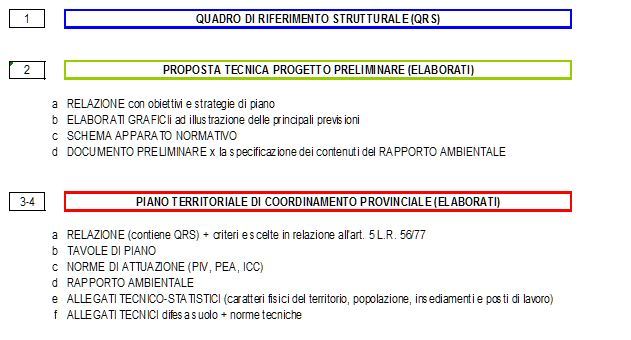In coerenza con quanto previsto dal Piano Territoriale Regionale e dalla L.R. 56/1977 e ss.mm.ii., la variante al PTCP si articolerà in una struttura con quattro documenti chiave: